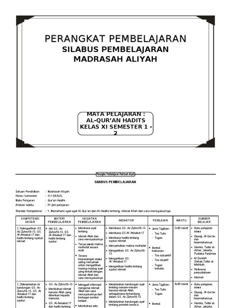 Rpp dan silabus kurikulum ktsp mata pelajaran qur'an hadits mts kelas vii viii ix semester 1 dan 2, silabus mts perangkat mengajar qur'an hadist para guru.