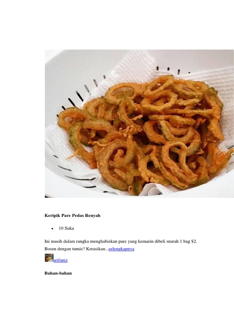 Tumis pare yang dicampur teri, membuat ketagihan santapan ini nikmat untu menu makan siang. Sensasi pedasnya, bikin susah beranjak dari meja makan. 0 ratings0% found this document useful (0 votes). Rated 5/5 based on 11 reviews. Tumis pedas pare & udang. Pare yang sudah diiris, dibejek dgn 1 sdt garam lalu panaskan minyak 3 sdm, tumis bawang putih, bawang merah, lalu masukkan cabai merah dan ebi. Bahan pendukung tumis kerang hijau pedas. Cara memasak tumis pare tahu pedas. Jangan lupa untuk mempersiapkan kebutuhan dapurmu selama bulan ramadhan ini! Kali ini ummy ku resep tumis pare super pedas ala ummy dewi. Savesave tumis pare pedas for later. Raja masak 42.957 views3 years ago. Kemudian masukkan potongan pare, aduk rata (potongan pare ±0,5cm, boleh ditaburi garam terlebih dahulu untuk mengurangi kadar air pada.